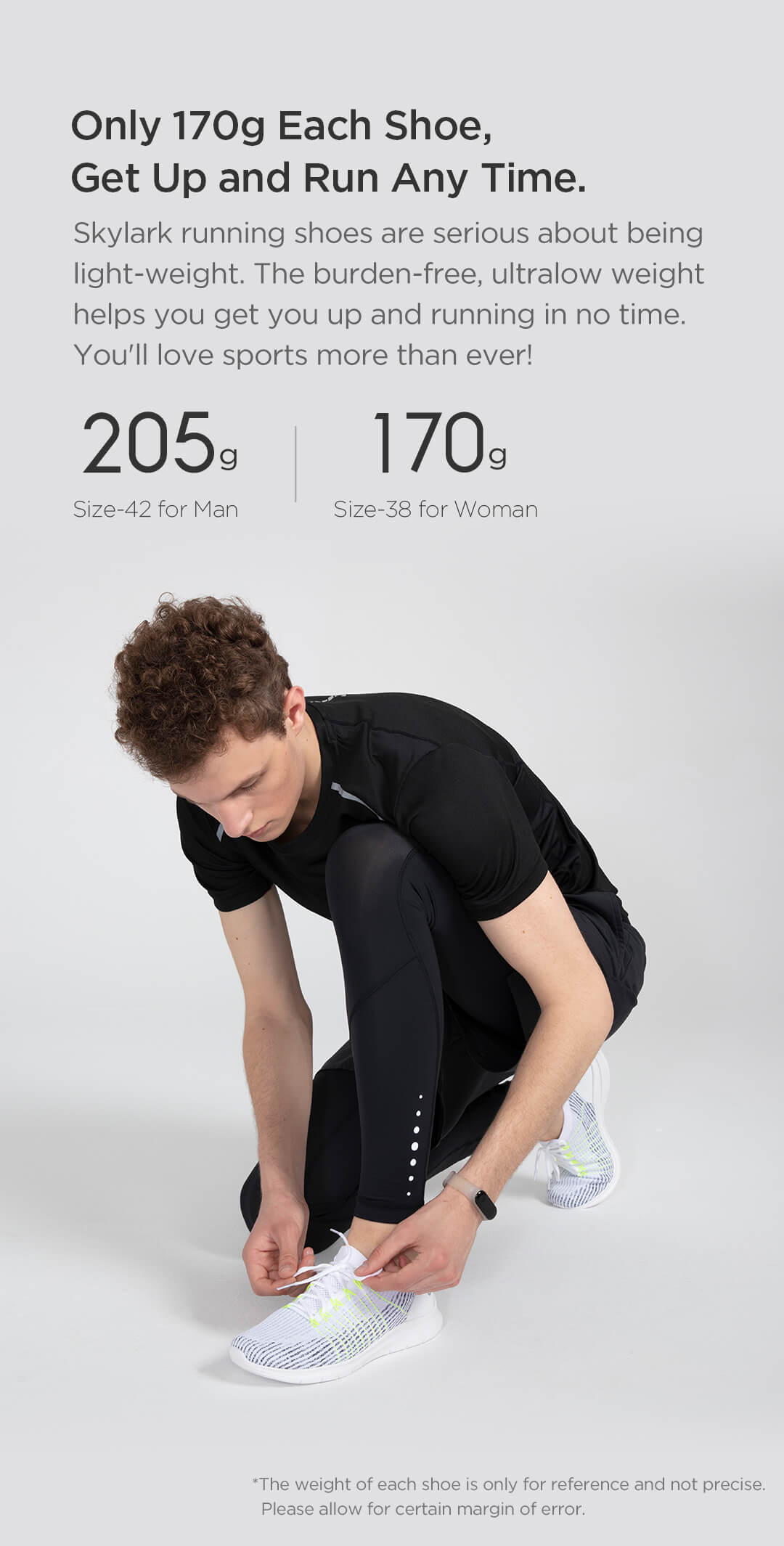 Amazfit Skylark running shoes are serious about being light-weight. The burden-free, ultralow weight helps you get you up and running in no time. You'll love sports more than ever!